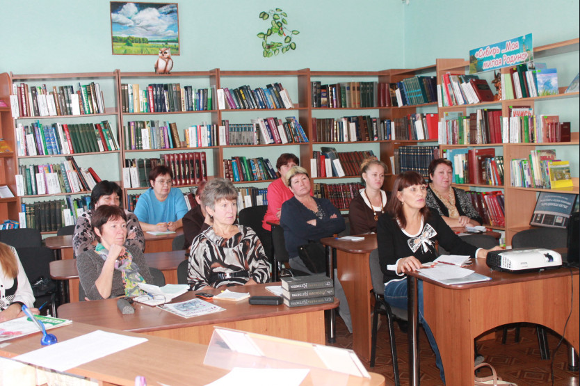 Необыкновенно оживлённо и заинтересованно прошла первая часть семинара, в которой сотрудники библиотек района с помощью электронных презентаций поделились опытом работы. Презентации представили: сотрудники Центральной библиотеки (Ошлыкова Т.В., Шерер О.В.), а также сельских библиотек ( Лягушенской – Симоненко Н.А., Метелевской – Екк Н.А., Новосельской – Саможенова И.И. и Новоключевской – Эсаулова Л.П). Практическая часть семинара показала, что библиотекари района работают увлечённо и профессионально.
