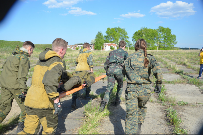 А всё потому, что воспитание молодых людей в духе гражданственности и патриотизма – это приоритетная цель. Уже традиционным мероприятием этого характера стал смотр-конкурс клубов юных друзей пограничников Новосибирской области. Ежегодно с 2006 года на территории города Купино собираются воспитанники военно-патриотических клубов. Двадцать первого мая прошёл десятый, Юбилейный смотр-конкурс! Солнечно-гостеприимная погода встречала одиннадцать команд-участников: «Жас Улан» (Железинский район, республика Казахстан), «Русичи» (село Вознесенка, Баганский район), «Витязь-1» (Баганский район), «Витязь-2» (Здвинский район), «Соколята» (с. Камышино, Купинский район), «Ветер» (с. Стеклянное, Купинский район), «Орлы» (с. Копкуль, Купинский район), «Пламя» (Купинская школа-интернат, г. Купино), «Пограничник-1», «Пограничник-2», «Юный погранец» (военно-патриотический клуб при Купинском районном молодёжном центре, г. Купино). Организаторами ЮДП стали Купинский районный молодёжный центр совместно с Пограничным управлением ФСБ России по Новосибирской области, Государственным бюджетным учреждением Новосибирской области «Дом молодёжи» и Новосибирской областной общественной организацией Общества «Динамо». По установившемуся уже обычаю конкурс начался с торжественного построения. Флаг смотра подняли представители гостей-соседей – команды «Жас Улан» и прошлогодние победители из команды «Русичи» села Вознесенка Баганского района. Участников военно-спортивных соревнований приветствовали почётные гости: Глава Купинского района Владимир Николаевич Шубников, директор управления образования Купинского района Марина Анатольевна Соболевская, заместитель председателя Новосибирской областной организации Общества «Динамо», подполковник Роман Васильевич Конча, заместитель начальника Пограничного управления ФСБ России по Новосибирской области, полковник Игорь Анатольевич Куликов, начальник отдела в городе Купино пограничного управления ФСБ России по Новосибирской области, подполковник Антон Викторович Грищук… Все они тепло поздравили и пожелали удачи юнармейцам в таком важном и нелёгком событии. Торжественное открытие продолжается: областным Управлением молодёжной политики 2016 год объявлен годом Нации Героев, героев, кто сложил головы, защищая Отечество, героев, которые живут среди нас, трудами которых прирастает мощь и сила России. В честь памяти мужеству и героизму воинов-пограничников объявлена минута молчания, самый волнующий момент – головные уборы сняты, отсчитываются пронзительно секунды, такая тишина… Завершающие слова приветствия звучали набатом: конкурс призван укреплять пограничные традиции и дружеские связи между государствами, он служит напоминанием о том, что границы между странами должны не разъединять, а объединять народы. Меняются времена, но неизменным для тех, кто несёт службу на государственной границе остаются Доблесть, Мужество, Честь. Звучит команда «К торжественному маршу!». Под звуки марша «Прощание славянки» проходят отделения юных пограничников. И вот автоколонна, пройдя по улицам города, направилась на полигон. Здесь юных пограничников ждут довольно серьёзные испытания – на силу и выносливость, смекалку и знания, сноровку и умение действовать командой. Программа конкурса нелегка и обширна: стро